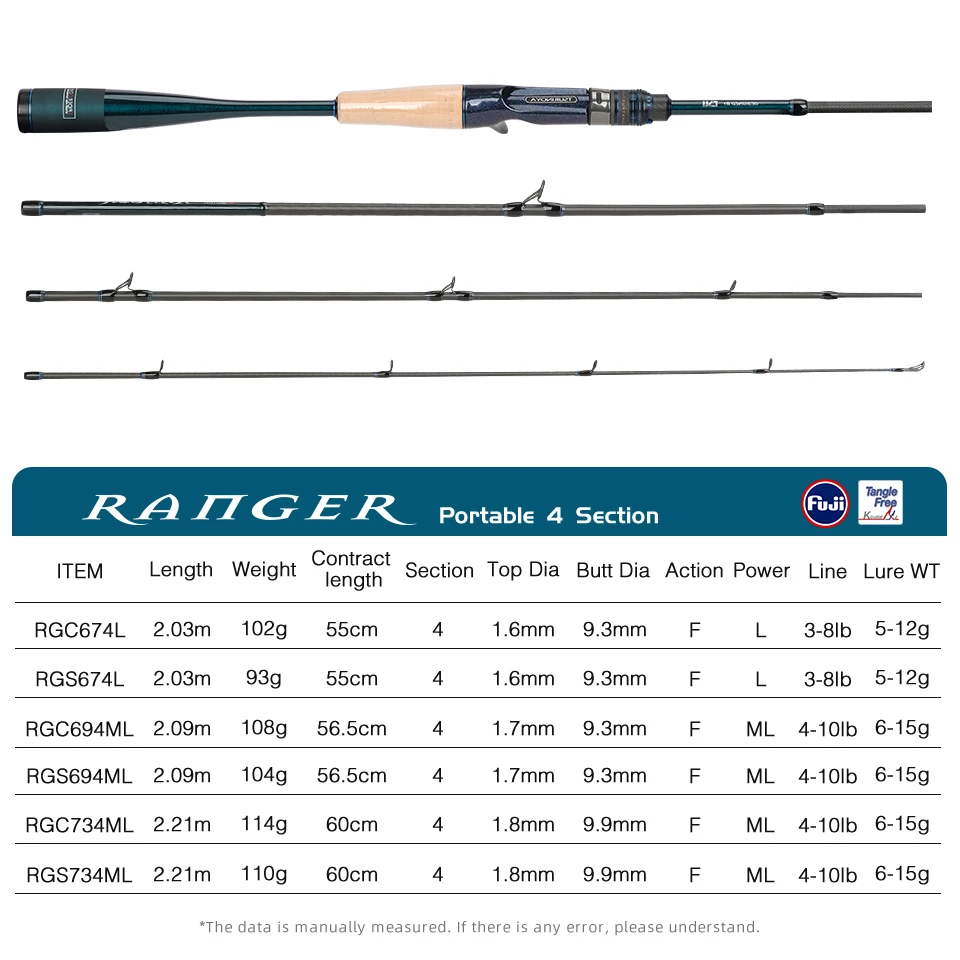 New TSURINOYA RANGER High Sensitivity Portable Fishing Rod 4 section 2.03m-2.21m 96g Ultra-light FUJI Guide Spinning Casting Rod
